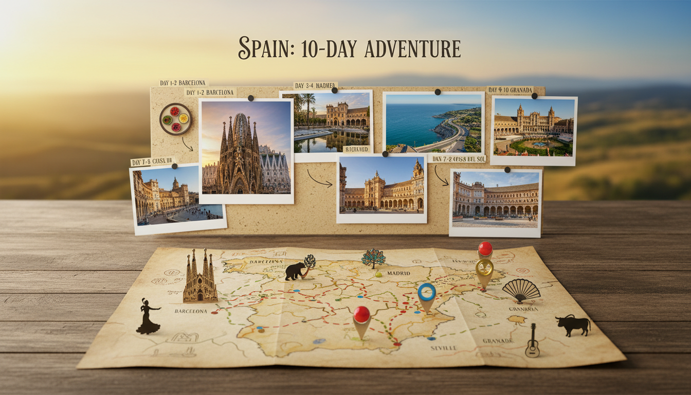 This open-jaw plan—fly into Barcelona (BCN) and depart Madrid (MAD)—keeps the pace realistic and car-free. I built the days to balance iconic sights, neighborhood walks, and relaxed dining.